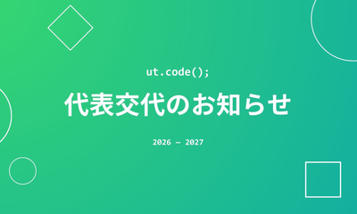 この度、ut.code(); の代表と副代表が交代いたしましたので、お知らせします。 第 5 代代表として私、安村拓也が就任しました。また、第 1 副代表には...